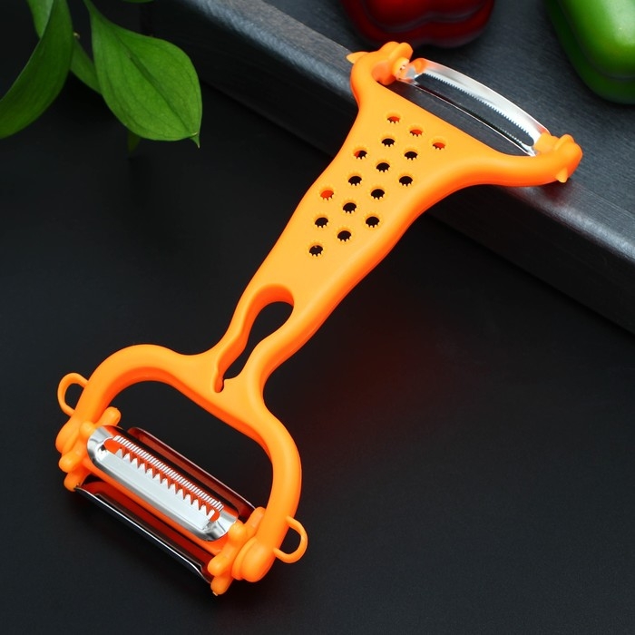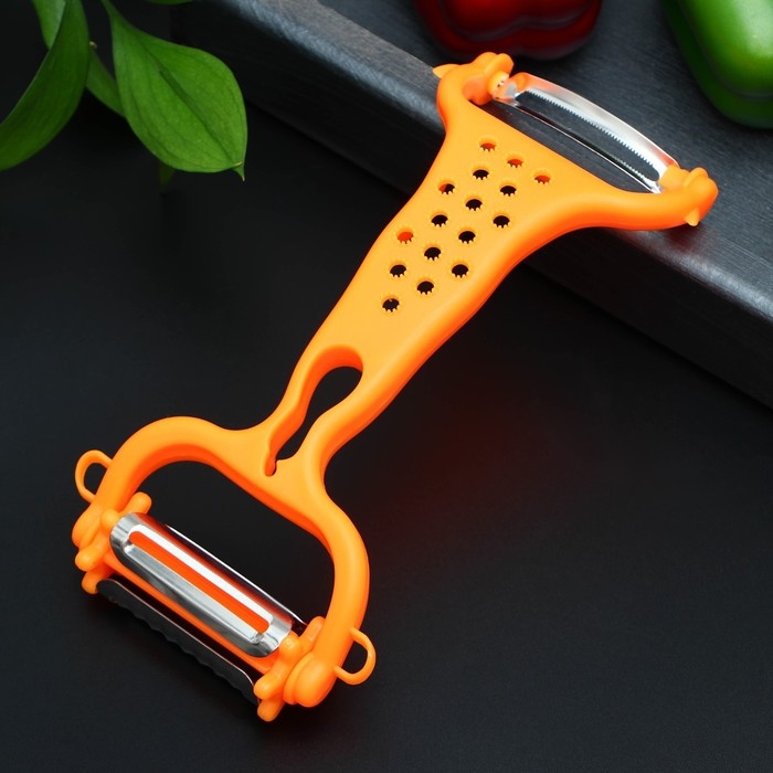 Овощечистка двухсторонняя «Скраб», 18 см, цвет красный