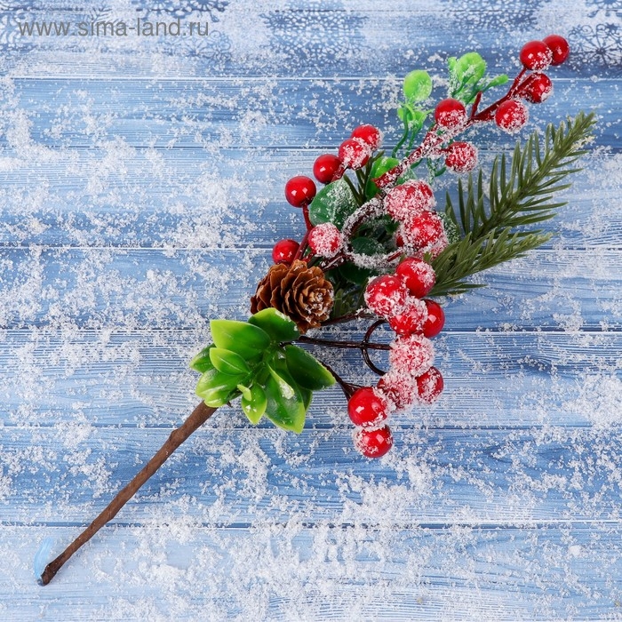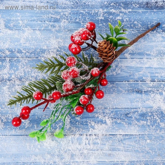 Декор "Зимние грезы" ягоды зелень хвоя шишка, 27 см