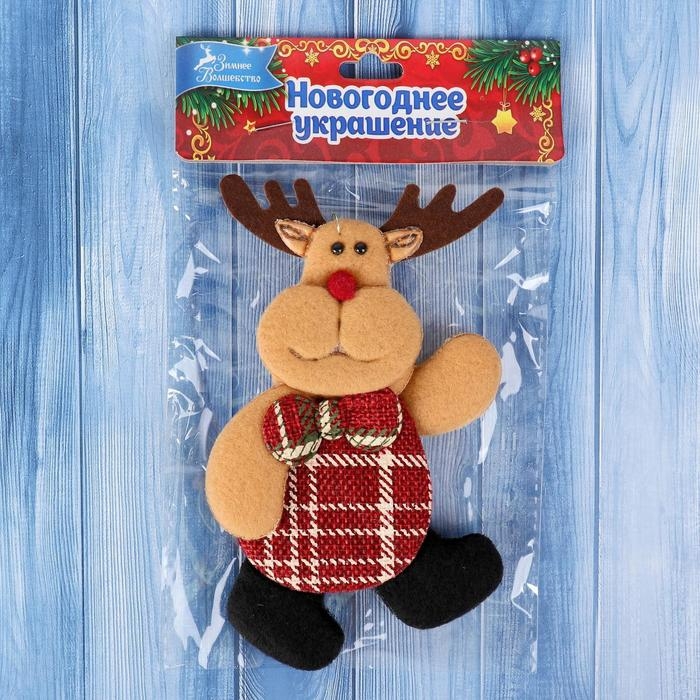 Мягкая подвеска "Олень в клеточку" 6х14 см, красно-коричневый