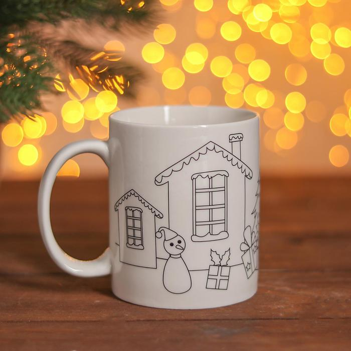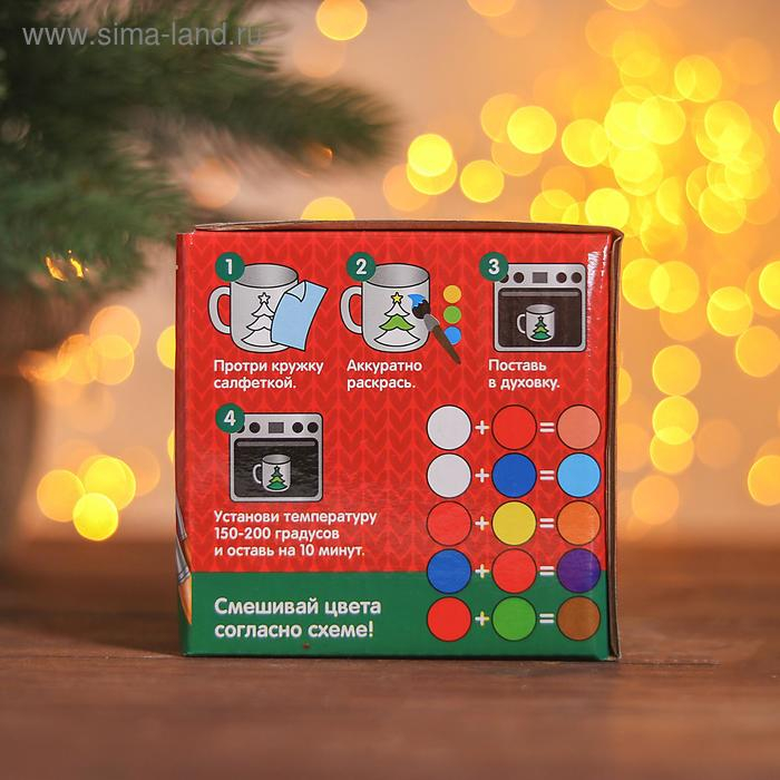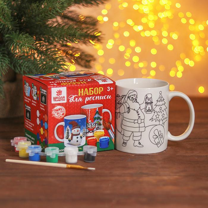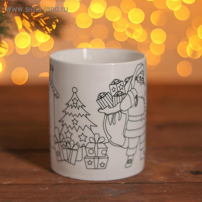 Набор кружка под раскраску «Дедушка Мороз с подарками» 250 мл + краска 6 цв по 2 мл, кисть