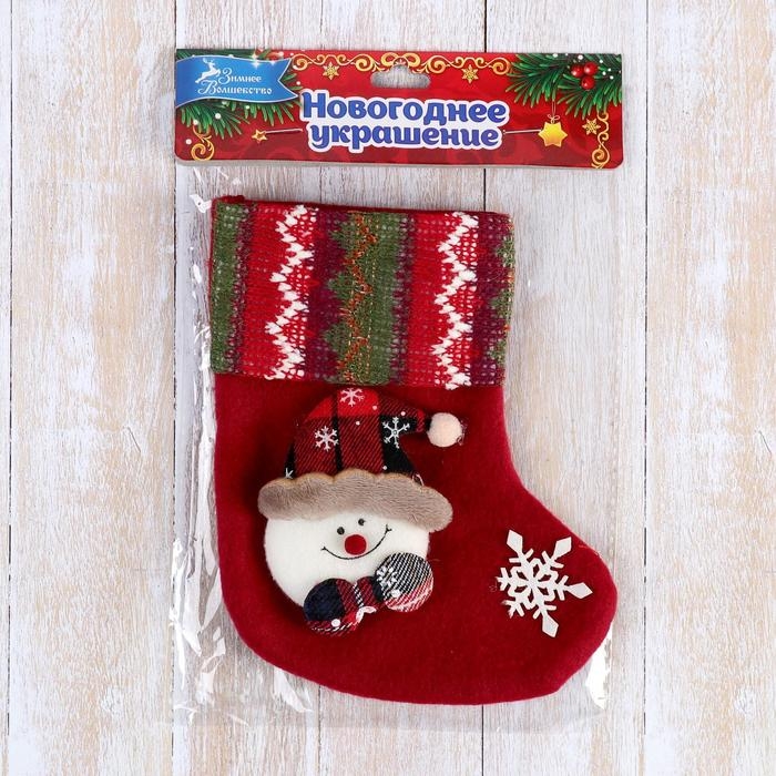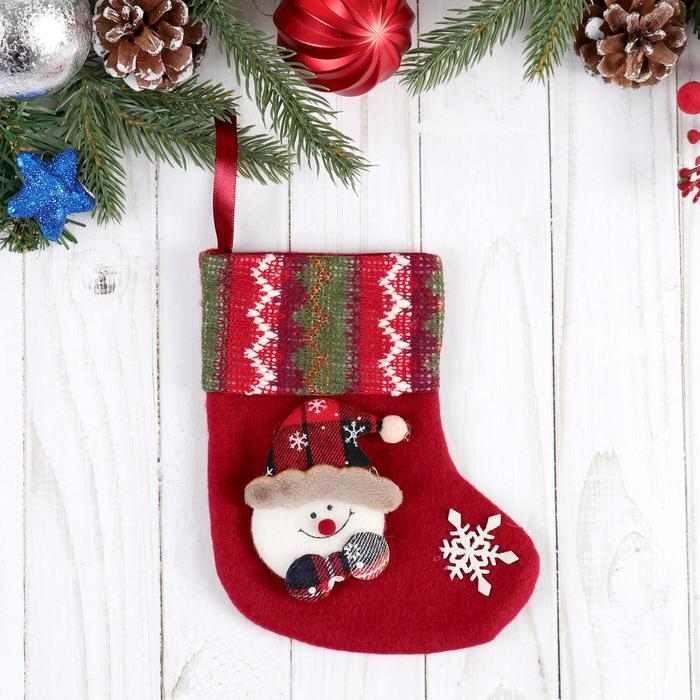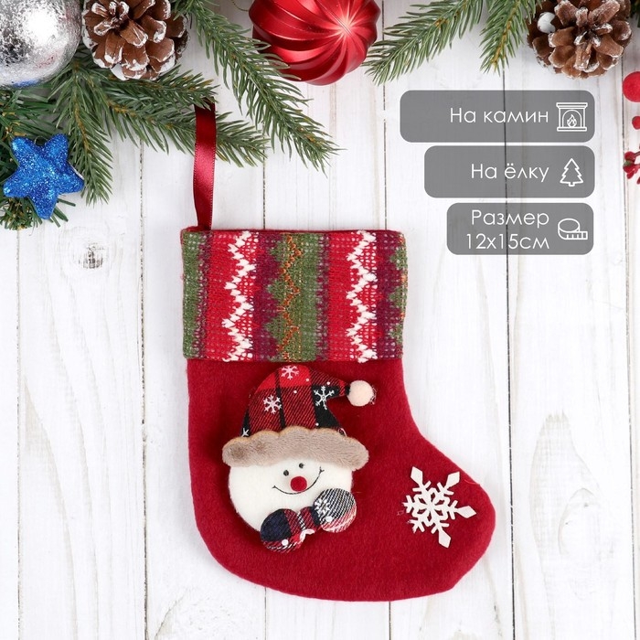 Носок для подарков "Праздничный уют" Снеговик, 12х15,5 см, красный
