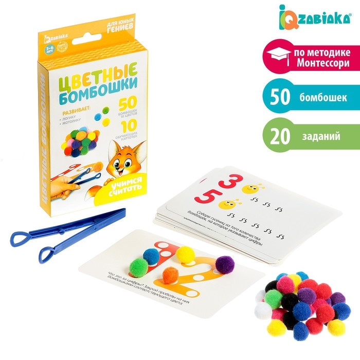 Развивающий набор «Цветные бомбошки: учимся считать», по методике Монтессори