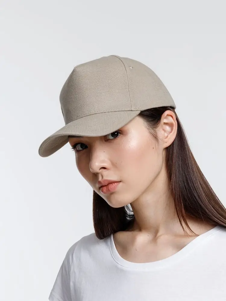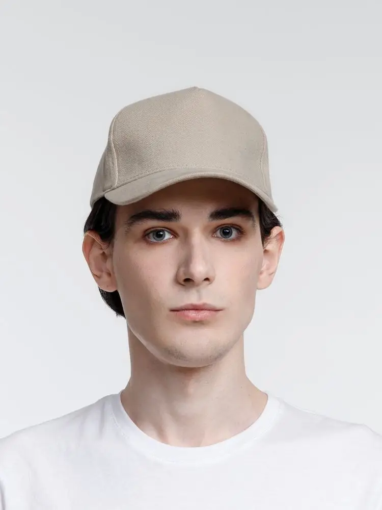 Минималистичная бейсболка с закругленным козырьком и большим местом для нанесения логотипа.