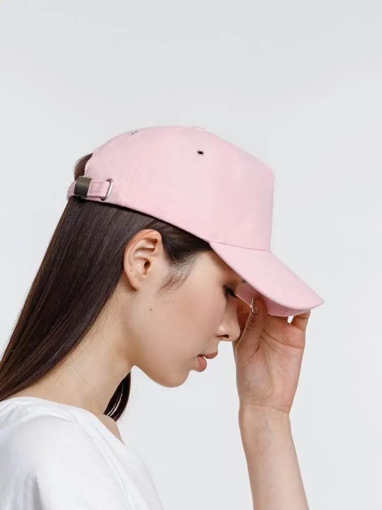 Минималистичная бейсболка с закругленным козырьком и большим местом для нанесения логотипа.