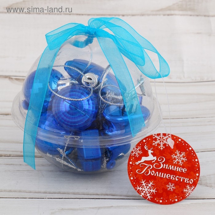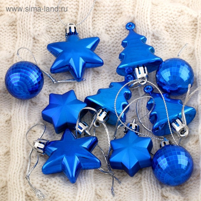 Набор украшений пластик 10 шт "Санда" (2 шара,2 конфеты,2 елки, 4 звезды) синий