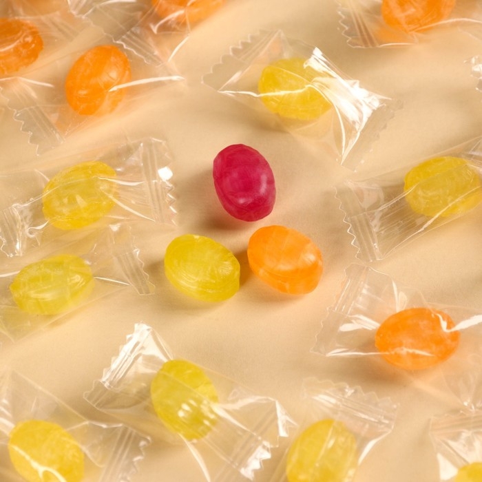 Состав: сахар, сироп мальтозный, регулятор кислотности – кислота лимонная, ароматизаторы (апельсин, дыня, лимон-лайм, тропические фрукты, лесные ягоды), красители пищевые натуральные (куркумин, кармин, экстракт паприки, медные комплексы хлорофиллов, антоцианы). Масса нетто: 50 г. Срок годности: 12 месяцев.