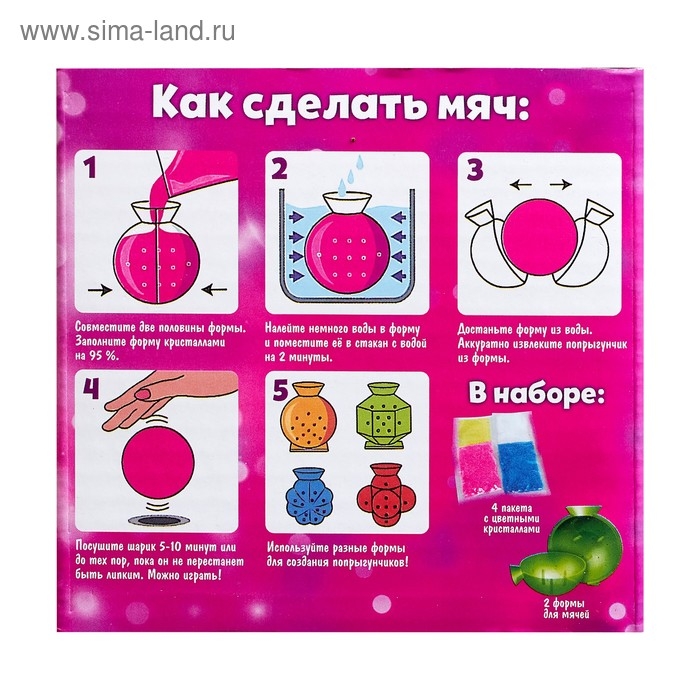 С набором «Прыгающие мячи» ребёнок проведёт химический опыт и создаст прыгающий шарик своими руками.