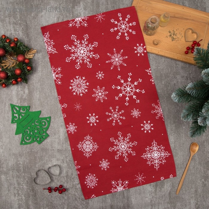 Полотенце "Доляна" Белые снежинки 40х70 см, 100% хлопок, 164 г/м2