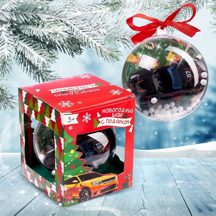 Новогодний шар с игрушкой — яркий подарок для маленького гонщика. Новогодний шар с машинкой – это не просто украшение, а интерактивная игрушка, которая подарит малышу множество веселых минут.