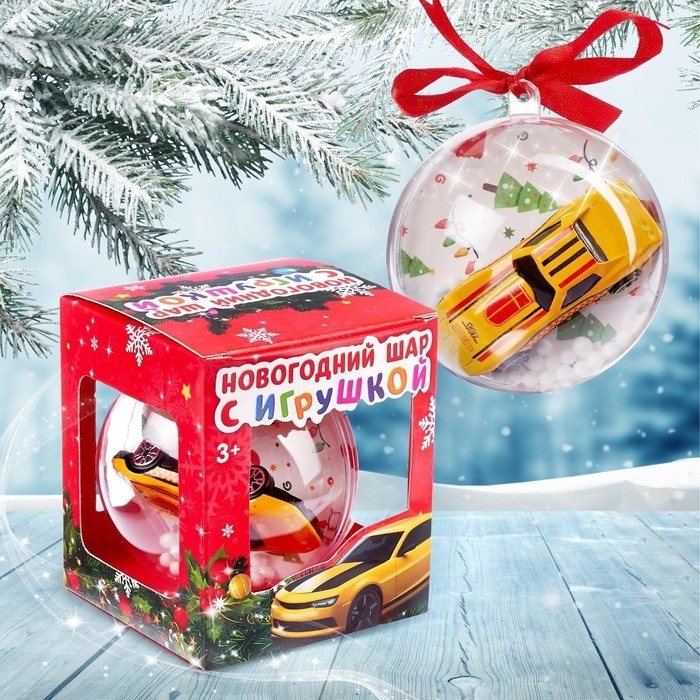 Новогодний шар с игрушкой «Машинка», цвета МИКС