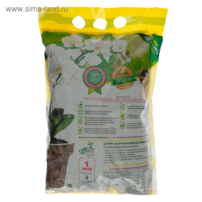 Состав: отборная сосновая кора мелкой фракции, мох сфагнум, гумус (100 мл в отдельном пакетике).