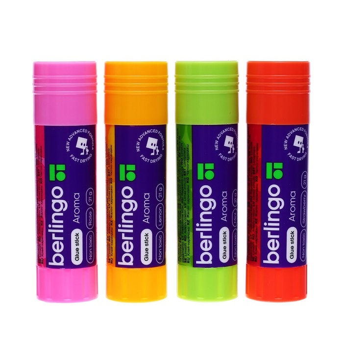 Клей-карандаш ПВП 21 г Berlingo, Aroma, ароматизированный (мята, лимон, клубника, роза) МИКС