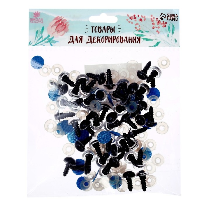 Глаза винтовые с заглушками, «Блёстки» набор 48 шт., размер 1 шт: 1,2 см, цвет синий