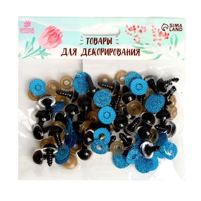 Глаза винтовые с заглушками, «Блёстки» набор 34 шт., размер 1 шт: 1,4 см, цвет голубой