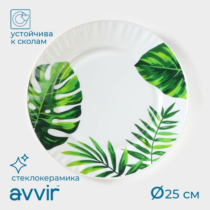 Тарелка обеденная Avvir «Лист папоротника», d=25 см, стеклокерамика, цвет белый