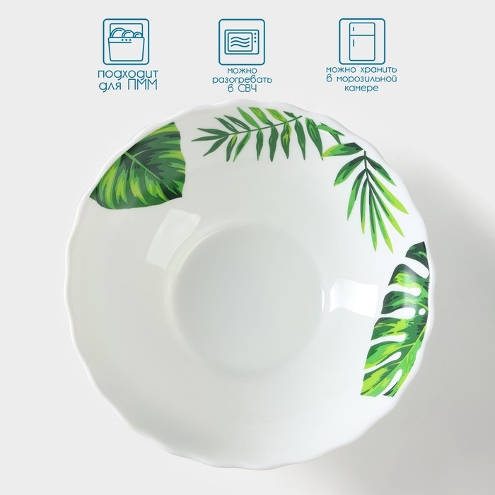 Тарелка глубокая Avvir «Лист папоротника», 600 мл, d=17,5 см, стеклокерамика, цвет белый