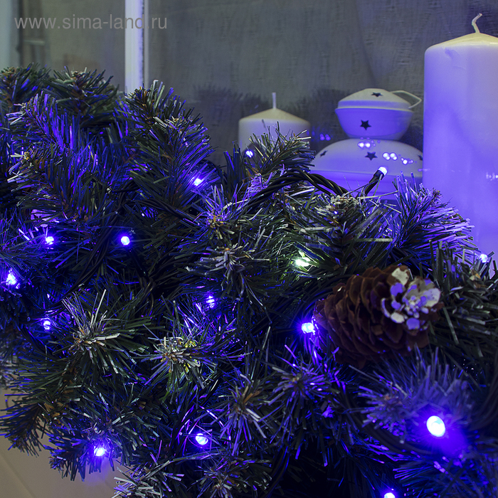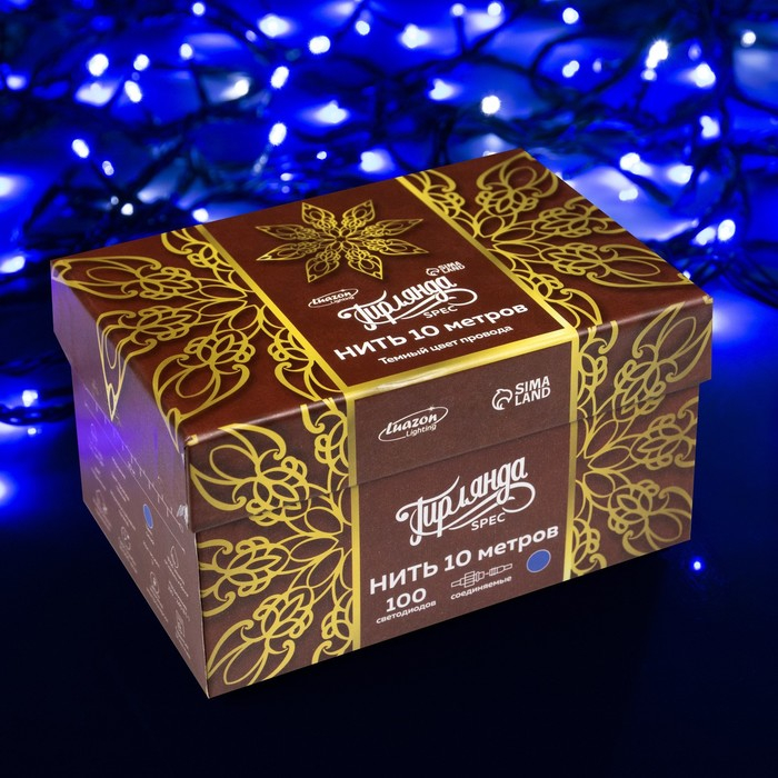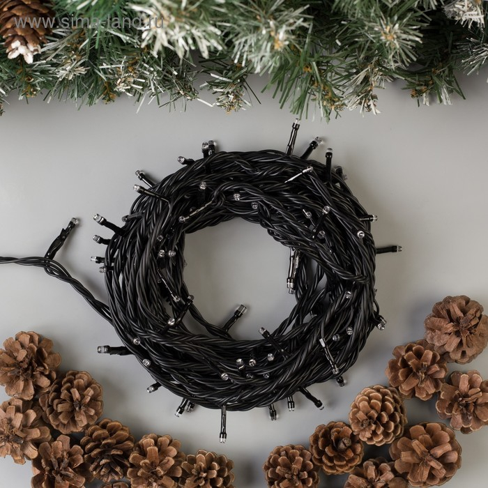 Гирлянда «Нить» 10 м, IP44, УМС, тёмная нить, 100 LED, свечение синее, мерцание белым, 220 В