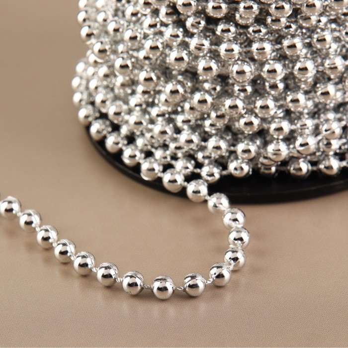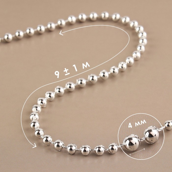 Бусы на нитях, круглые, 4 мм, 9 ± 1 м, цвет серебряный