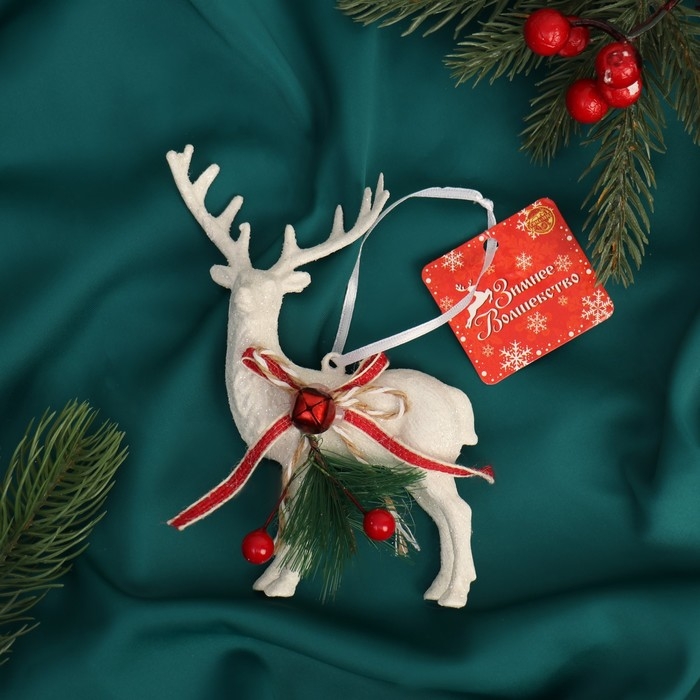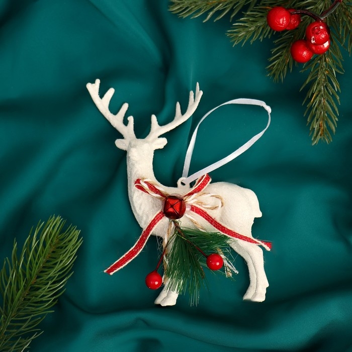 Украшение ёлочное "Снежный олень с бубенцом" 10х15 см, белый