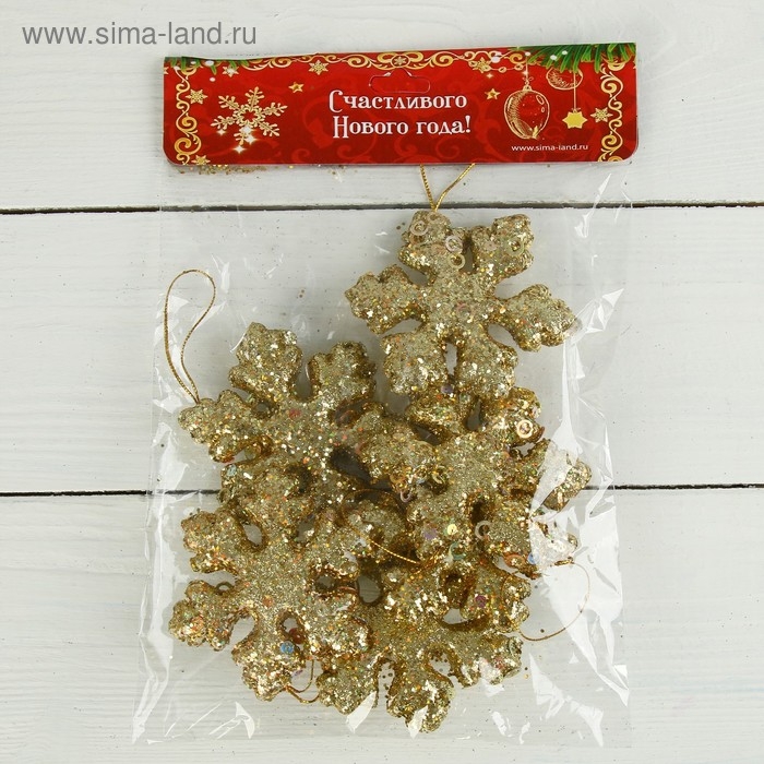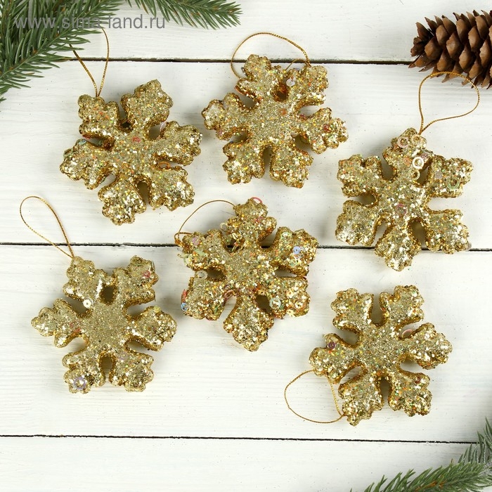 Украшение ёлочное "Снежинка объёмная" (набор 6 шт) d-7 см, золото