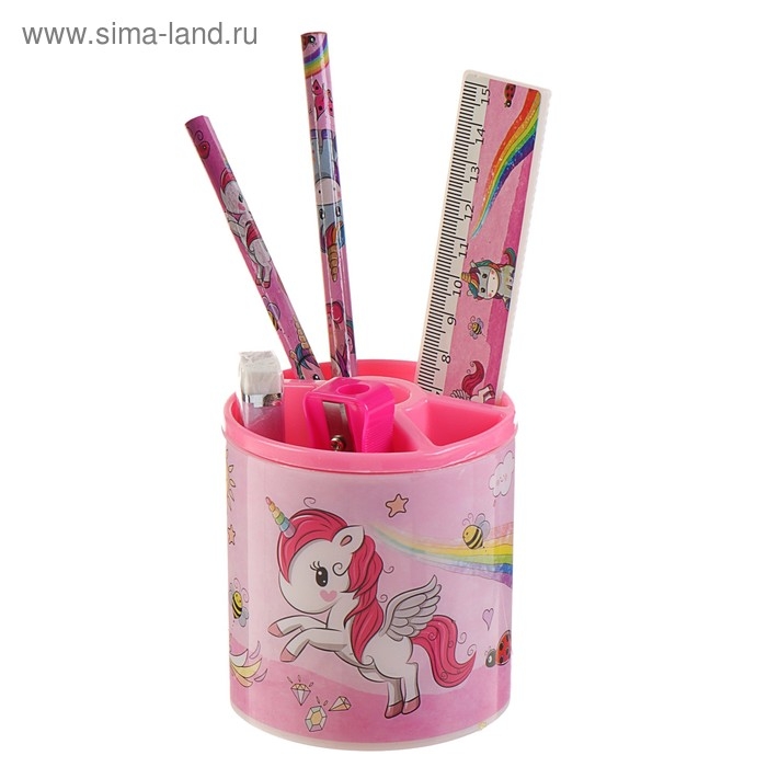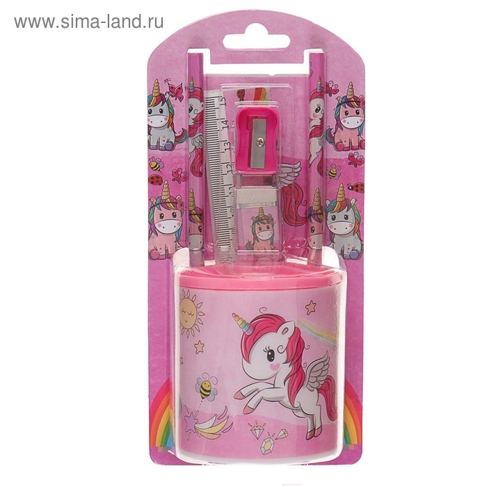 Набор настольный детский "Единорог" (подставка+2 карандаша+линейка+точилка+ластик+блокнот 8 листов)
