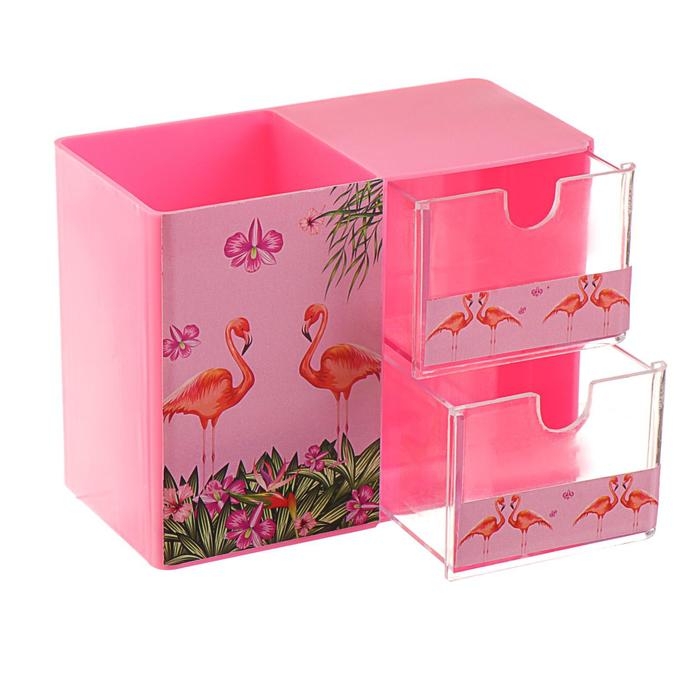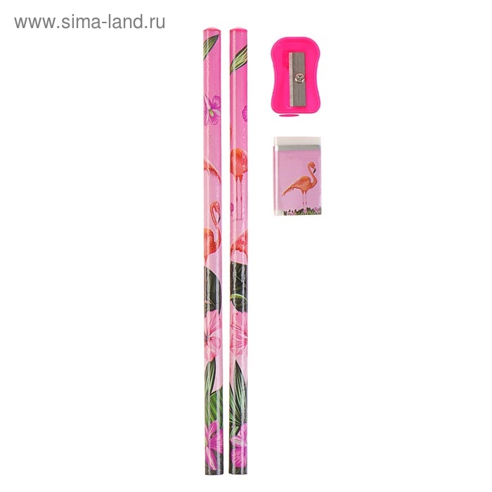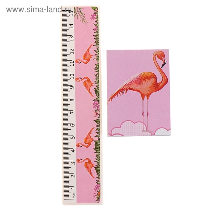 Набор настольный детский "Фламинго" (подставка+2 карандаша+линейка+точилка+ластик+блокнот 8 листов)