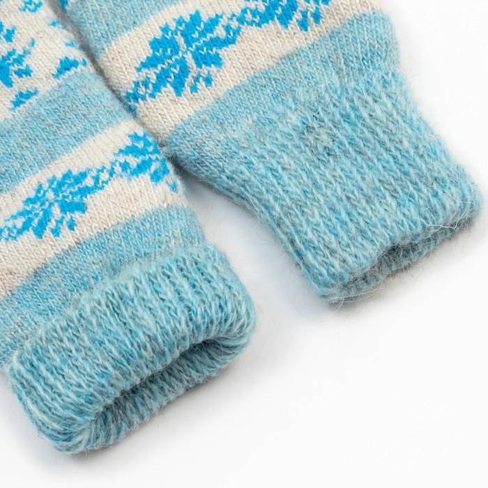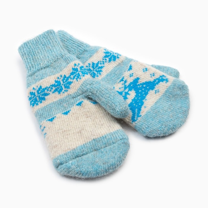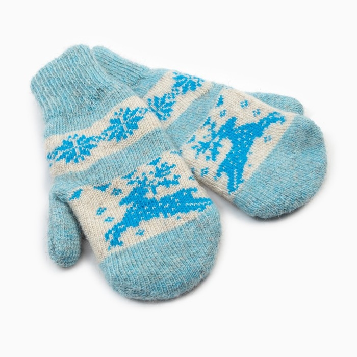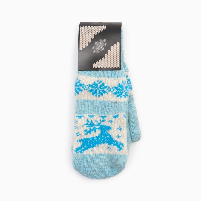 Новый год. Варежки женские шерстяные «Олень со снежинкой», цвет голубой, размер 20-22
