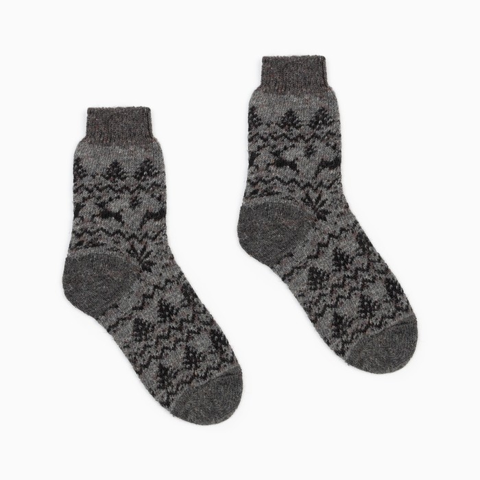 Носки мужские шерстяные "Орнамент-зима" цвет тёмно-серый, размер 27