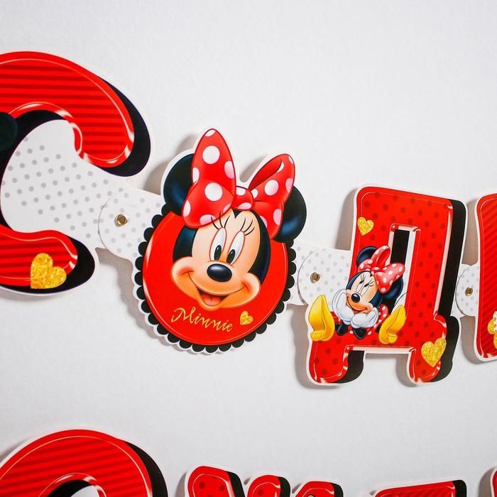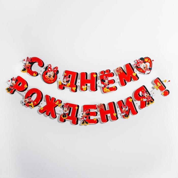 Гирлянда на люверсах "С Днем рождения!", длина 218 см, Минни Маус