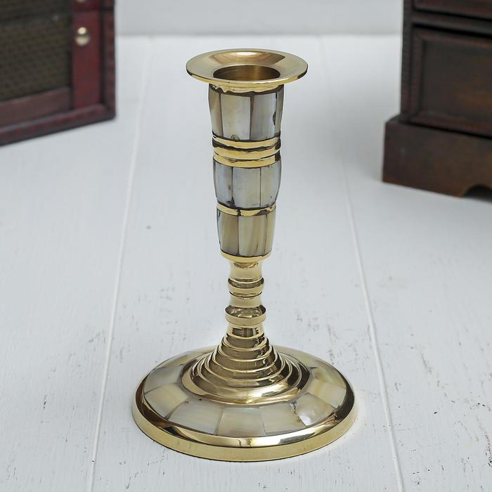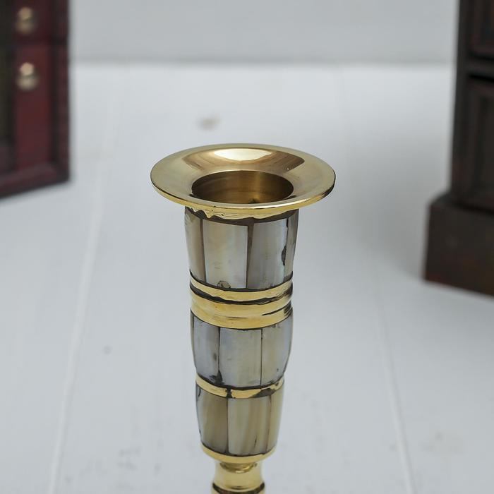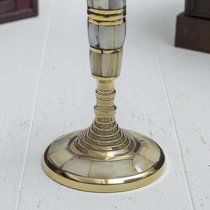 Подсвечник с перламутром "Счастье" на 1 свечу, латунь 8,5х8,5х12,5 см
