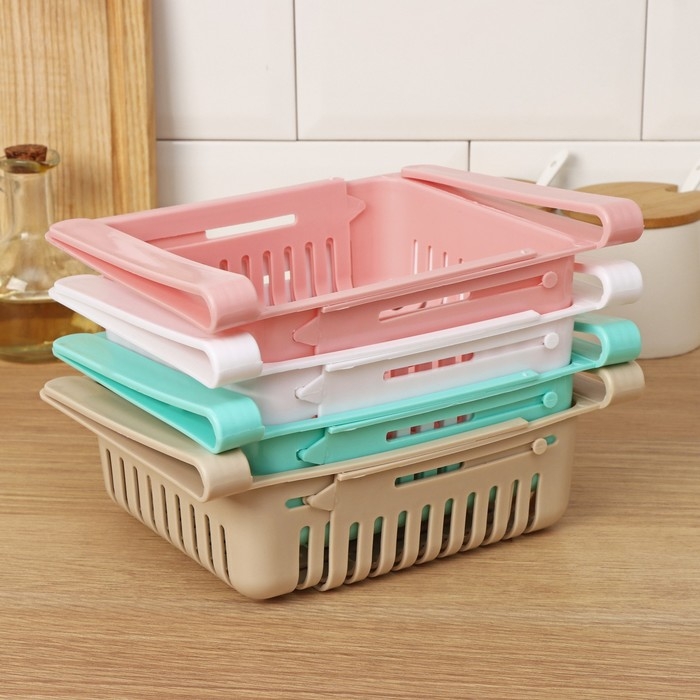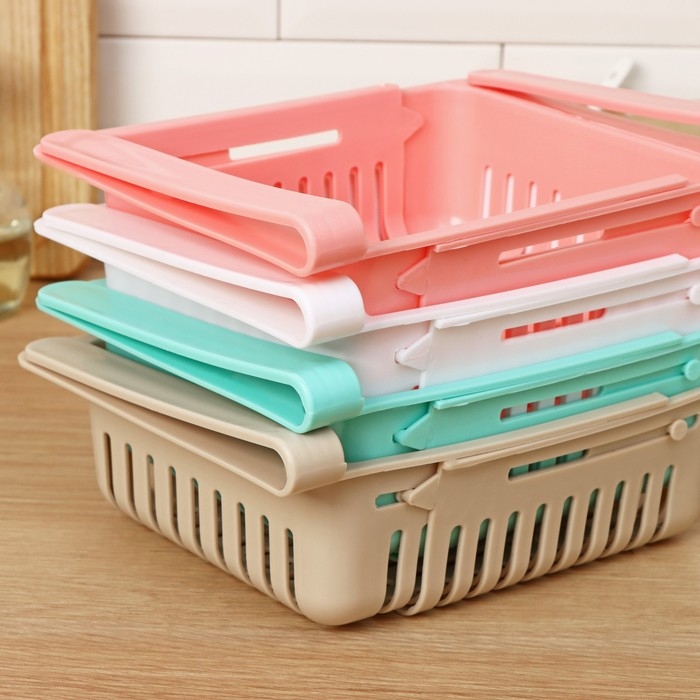 Полка подвесная в холодильник раздвижная Доляна, 20(28)×16,2×7,5 см, цвет МИКС
