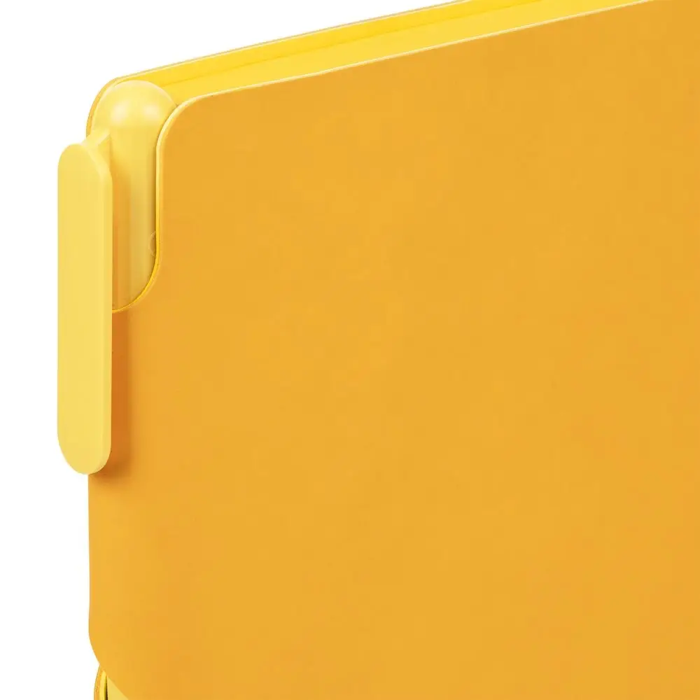 Удобный ежедневник с гибкой обложкой и местом под ручку в корешке, миниатюрная ручка из переработанного пластика и компактная самосборная коробка — простые составляющие полезного делового набора.