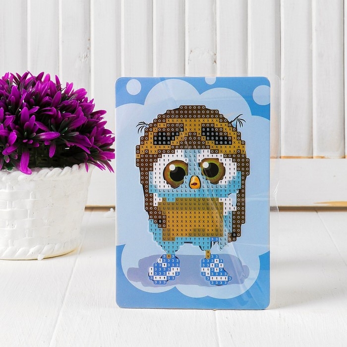 Алмазная вышивка «Сова в шлеме», с частичным заполнением, с подставкой, 10 × 15 см