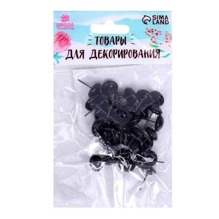 Глаза стеклянные на металлической ножке, набор 34 шт, d= 1 см, цвет чёрный
