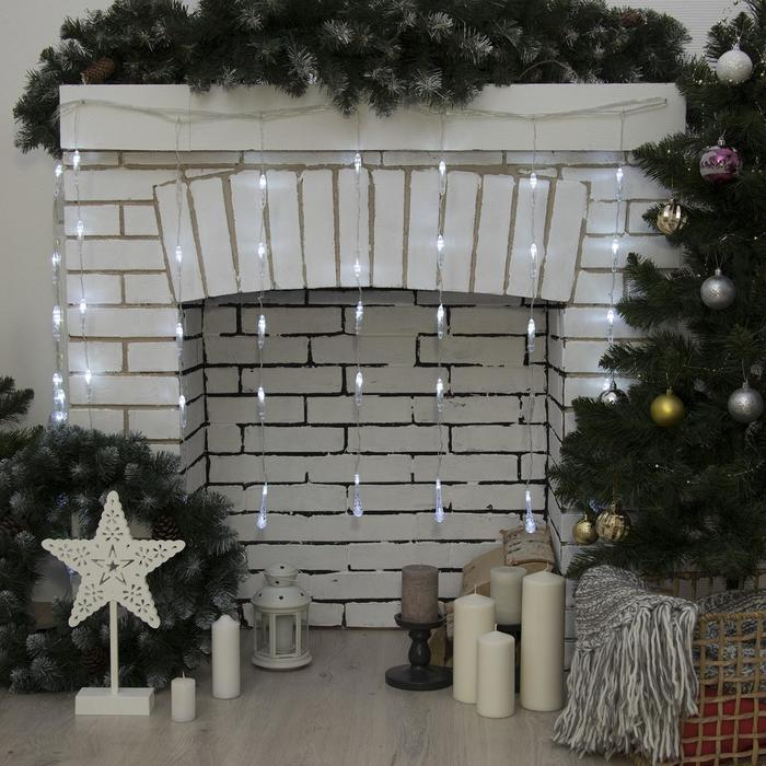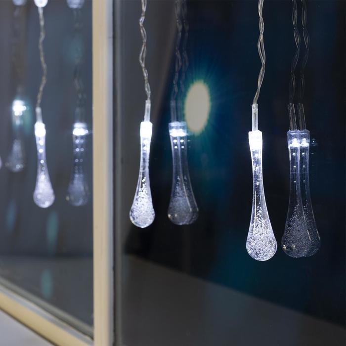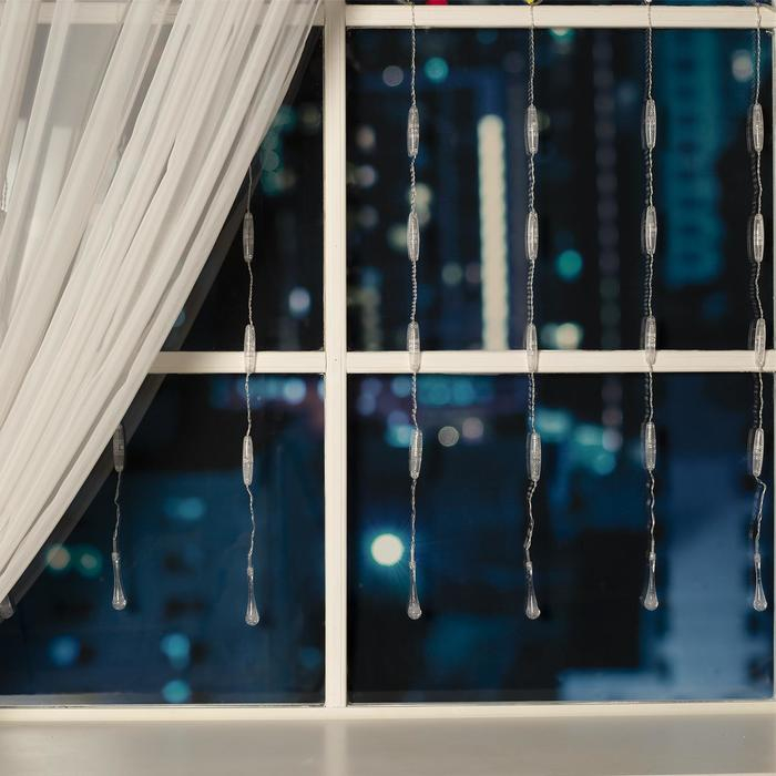 Гирлянда «Занавес» 2.5 × 0.65 м с насадками «Капли», IP20, прозрачная нить, 50 LED, свечение белое, 8 режимов, 220 В