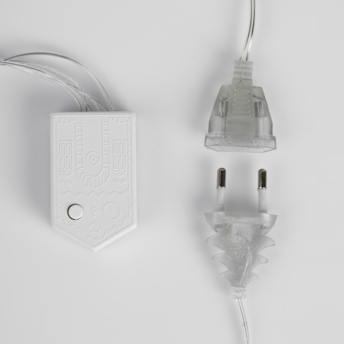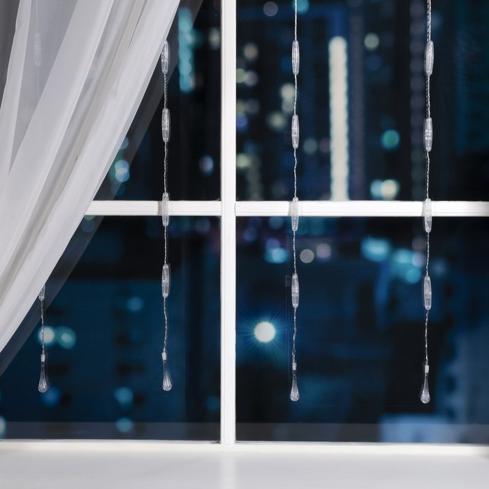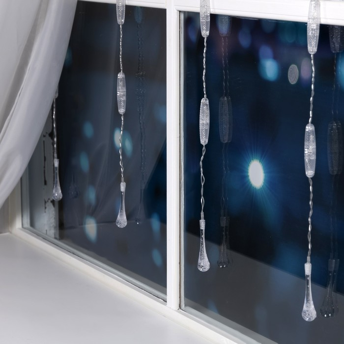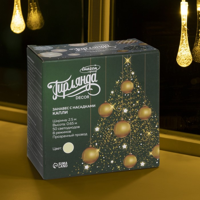 Гирлянда «Занавес» 2.5 × 0.65 м с насадками «Капли», IP20, прозрачная нить, 50 LED, свечение тёплое белое, 8 режимов, 220 В