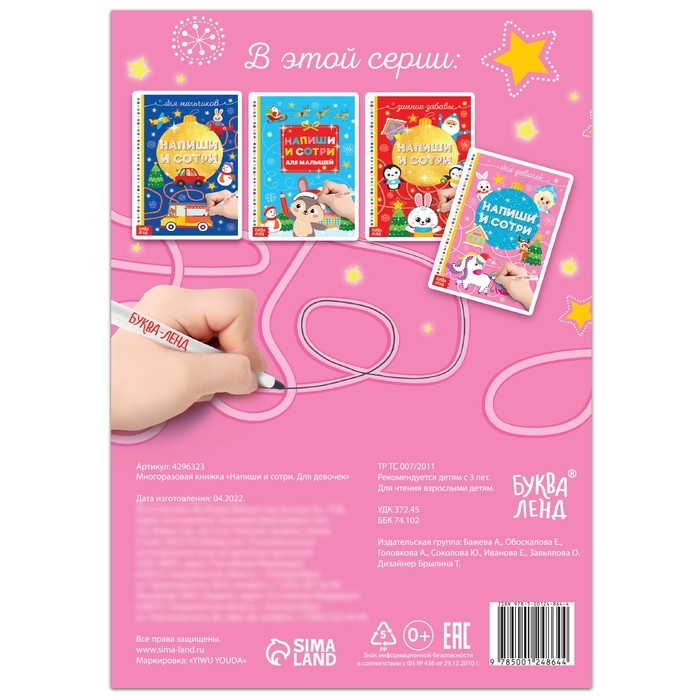 Многоразовая книжка «Пиши-спирай» предназначена для маленьких настоящих леди. Девочки с удовольствием будут выполнять увлекательные задания, которые создадут волшебное новогоднее настроение.
