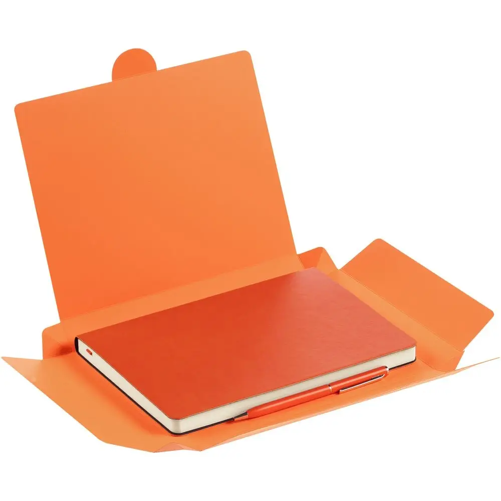 Недатированный ежедневник с гибкой обложкой из материала Latte с ляссе в цвет обложки, а также ручка в тон — в подарочной коробке из дизайнерского картона.