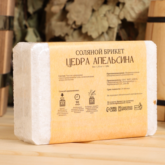 Соляной брикет "Цедра апельсина", 1,35 кг "Добропаровъ"