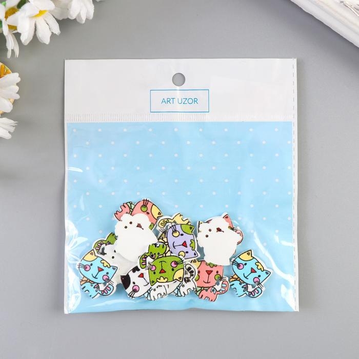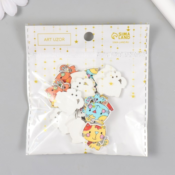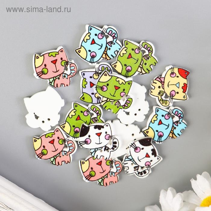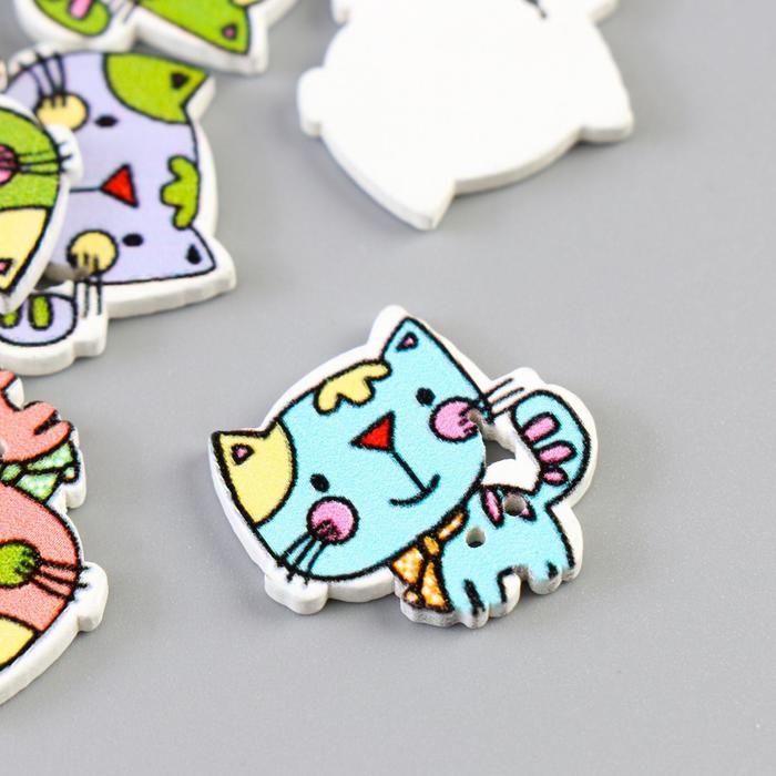 Набор пуговиц декоративных дерево "Милый котёнок" набор 15 шт МИКС 2х2,1 см