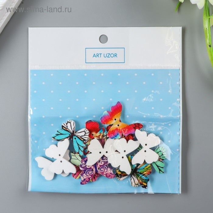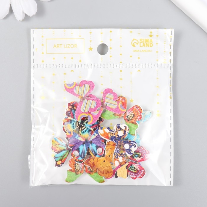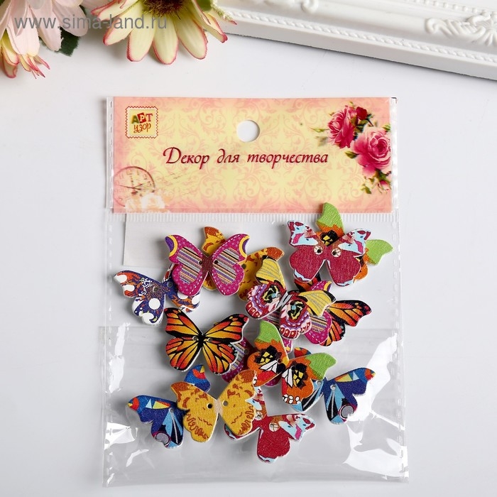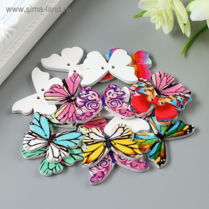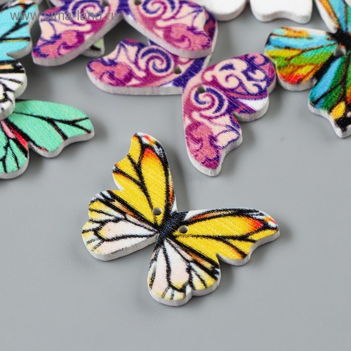 Набор пуговиц декоративных дерево "Яркие бабочки" набор 15 шт МИКС 1,9х2,5 см