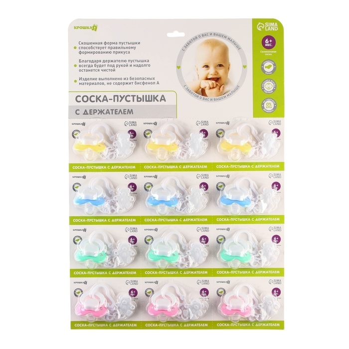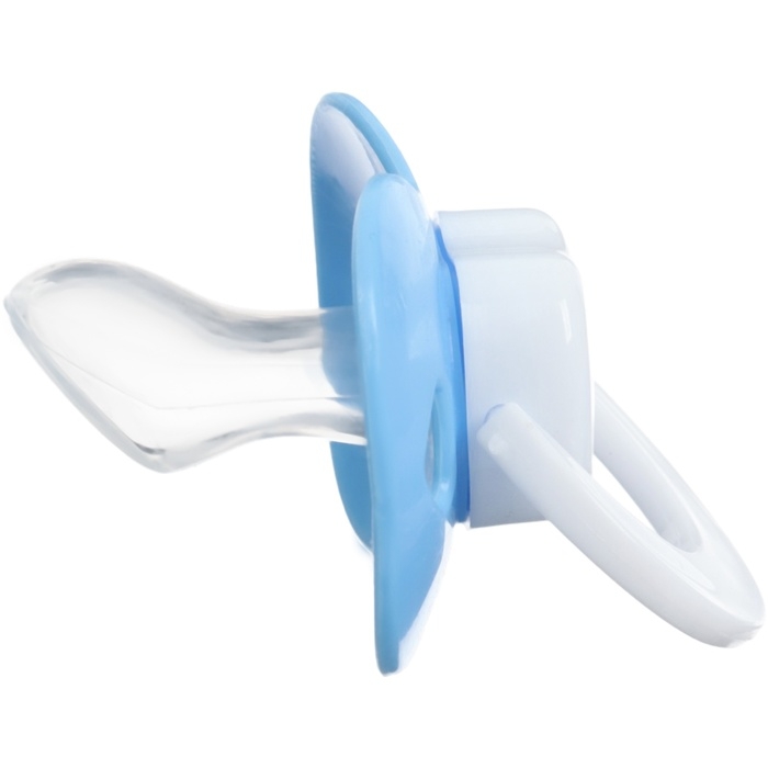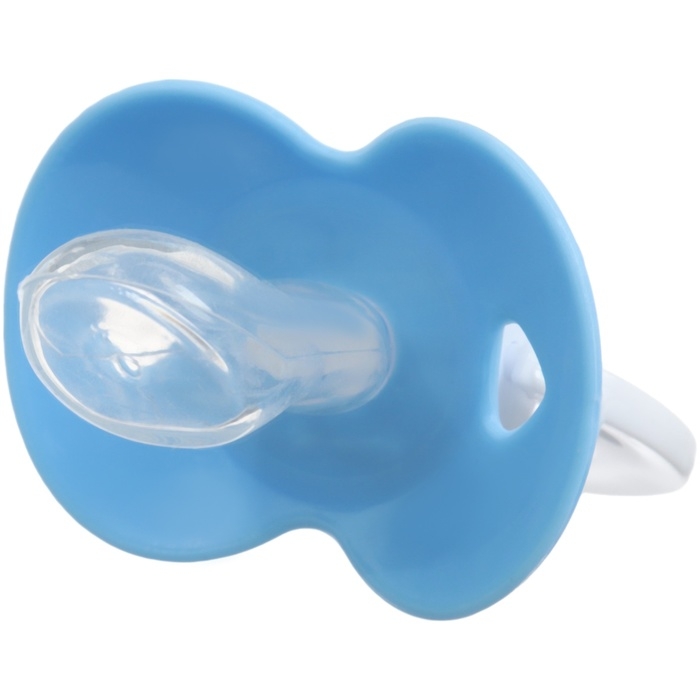Соска пустышки силиконовая и имеет анатомическую форму диска, специальные вентиляционные отверстия на пустышке улучшают циркуляцию воздуха не раздражают кожу малыша и не оставляют следов и опрелостей. Создана для удовлетворения естественного сосательного рефлекса малышей. Пустышка анатомической формы имеет немного сплюснутый сосок, благодаря чему прилегает к языку.