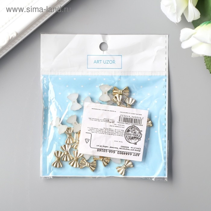 Декор для творчества пластик "Бантики" золото набор 30 шт 0,9х1,3 см