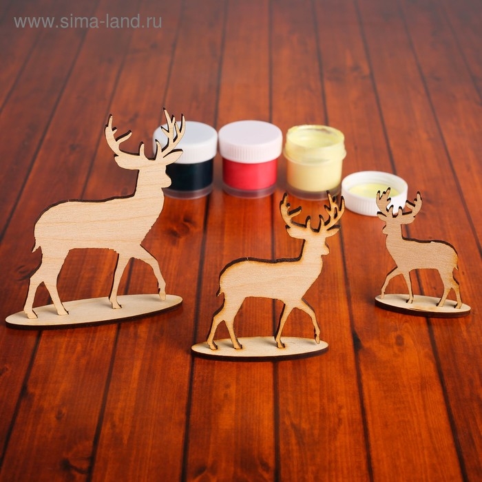 Набор заготовок для творчества «Олени на подставке», 3 шт, 5×6,5, 7×8.5, 9.5×11 см
