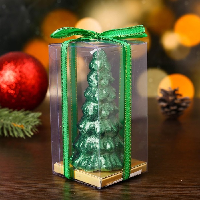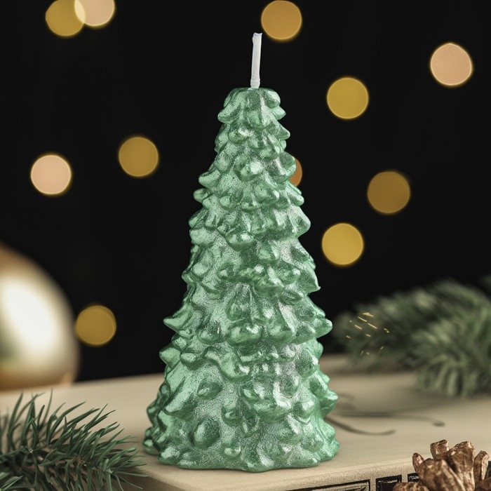 Свеча новогодняя "Ёлка" 10х5см, зелёный металлик