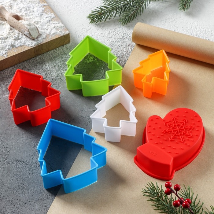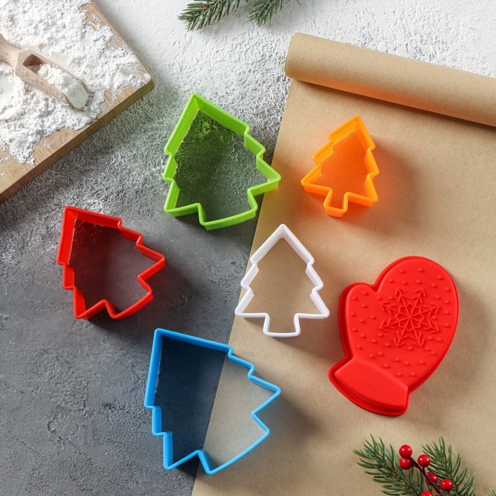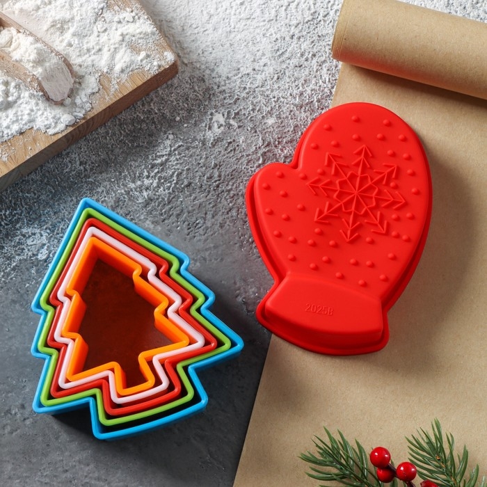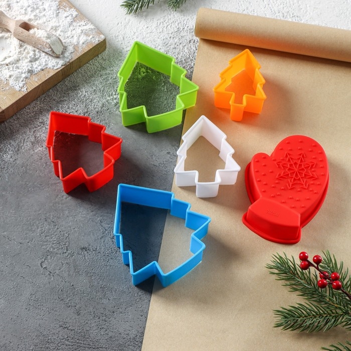 Набор для выпечки новогодний Доляна «Новогодняя», 6 предметов: форма для выпечки, набор форм для вырезания печенья 5 шт