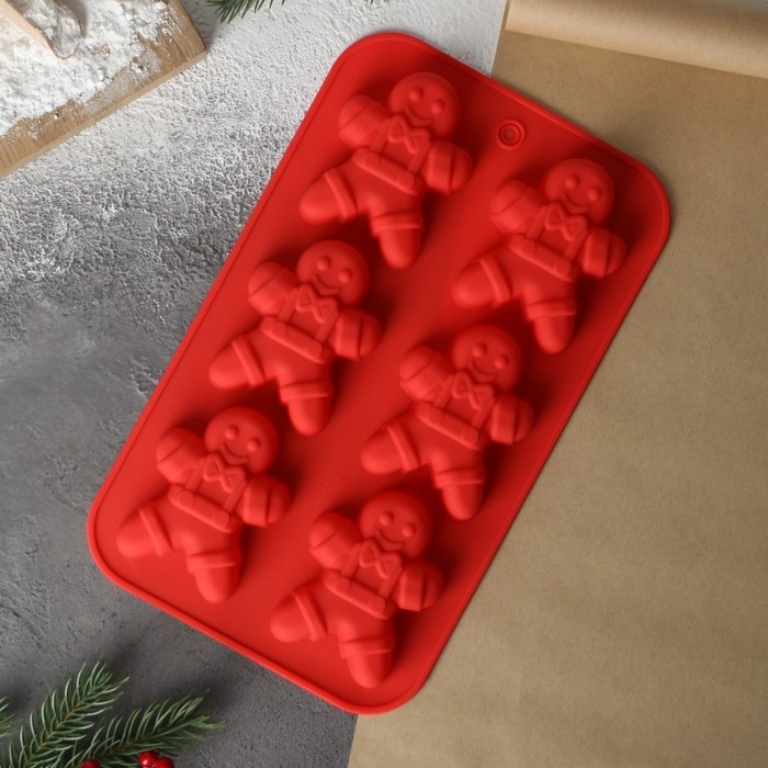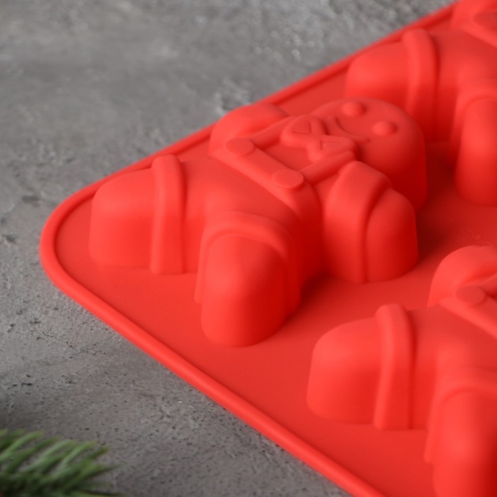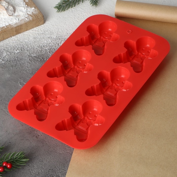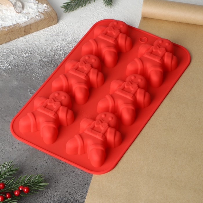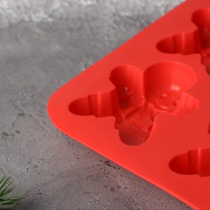 Форма для выпечки новогодняя Доляна «Новый год. Имбирный пряник», силикон, 28×17 см, 6 ячеек, цвет красный