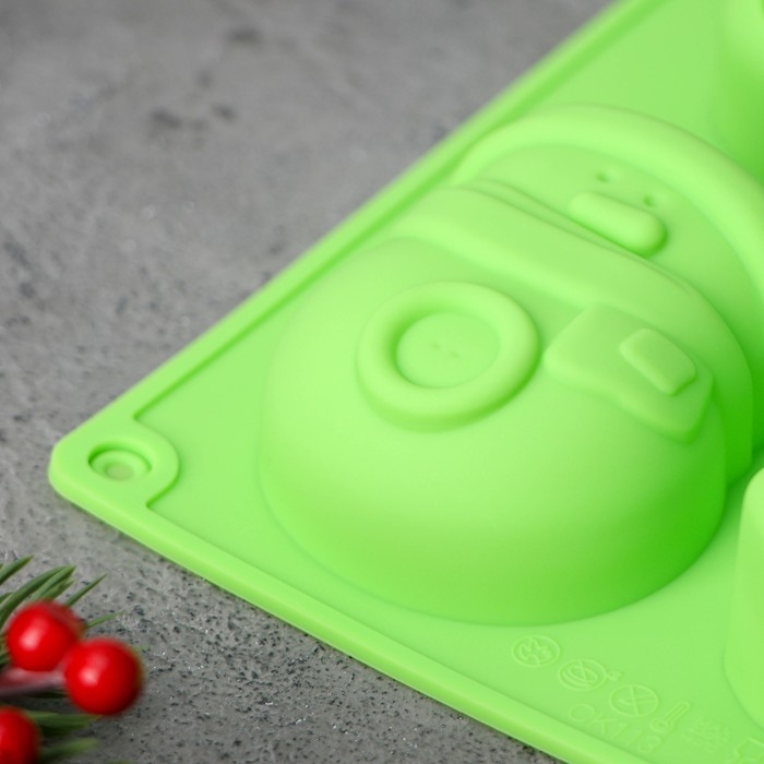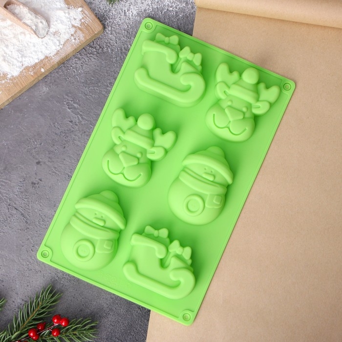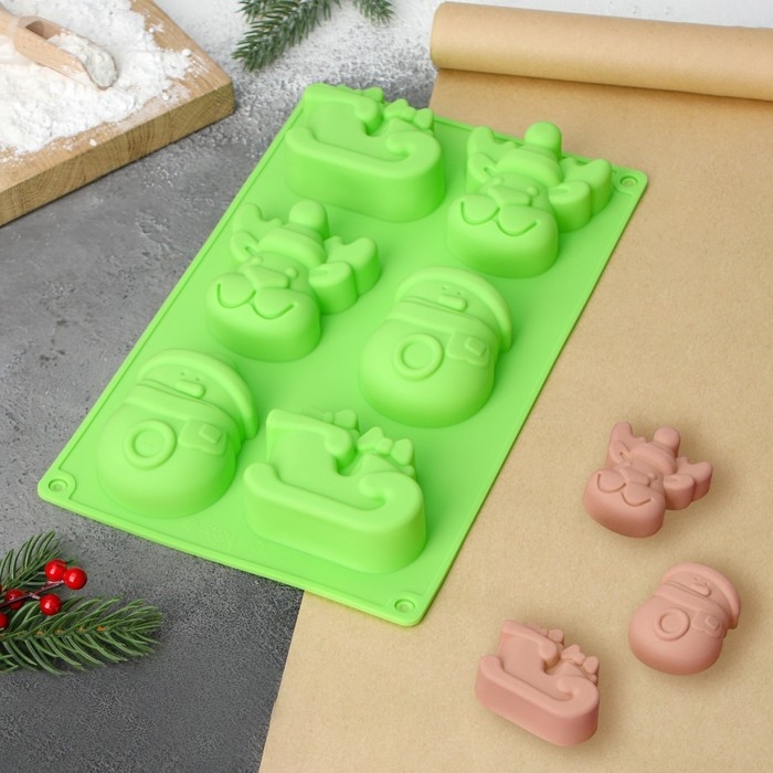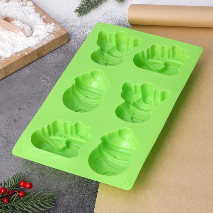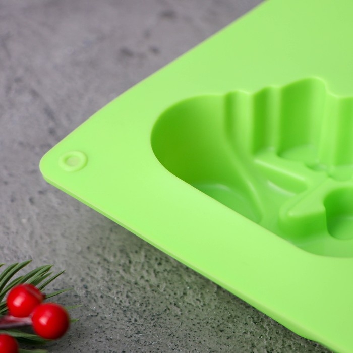 Форма для выпечки новогодняя Доляна «Новый год», силикон, 27×17×3 см, 6 ячеек (8×7×3 см), цвет зелёный