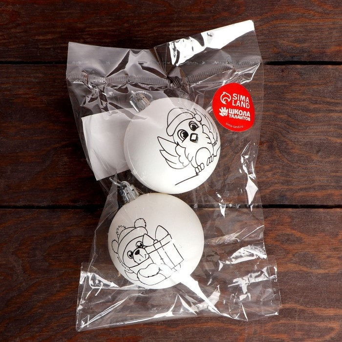 Ёлочное украшение под раскраску на новый год «Мишка и снегирь», 2 шт, d=5.5 см, новогодний набор для творчества