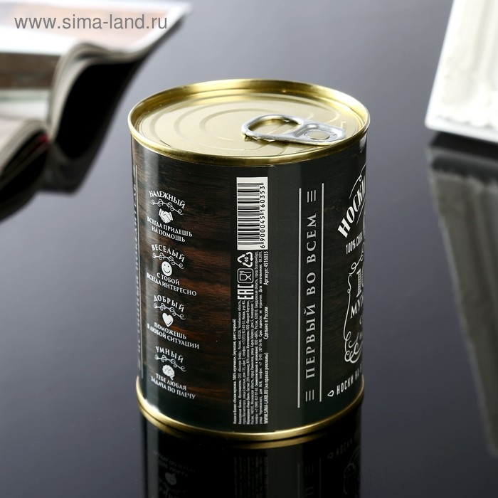 Носки в банке "Носки мужика. 100% мужчина" (мужские, цвет черный)